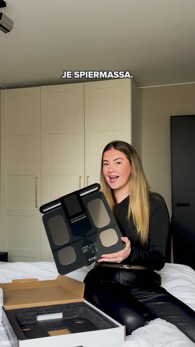Naast je gewicht meet een Robi weegschaal tot 29 lichaamswaarden, waaronder vetpercentage, spiermassa, botmassa, vochtgehalte, BMI, BMR (basaal metabolisme), visceraal vet en meer. De S11 en S15 meten daarnaast spiermassa en vetpercentage per arm en been apart, zo zie je precies waar jouw lichaam zich ontwikkelt.