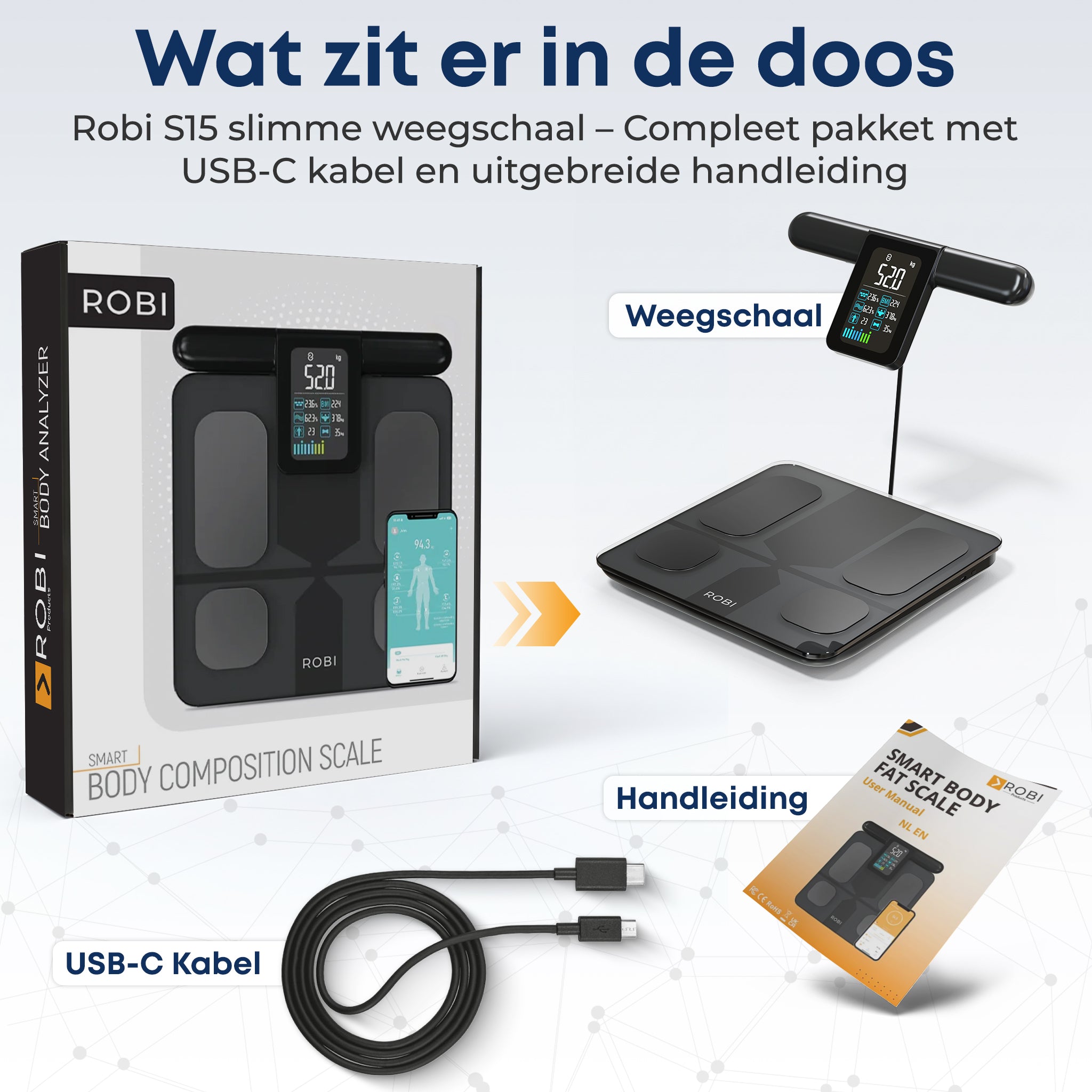 Je ontvangt standaard 2 jaar garantie én directe ondersteuning van het Robi Products team. Mocht er ooit iets misgaan, dan lossen we het meestal binnen 24 uur op. Bij een defect sturen we direct een vervangend exemplaar op, geen gedoe, geen lange formulieren. Zo koop je met de zekerheid dat je altijd een perfect werkende weegschaal in huis hebt.