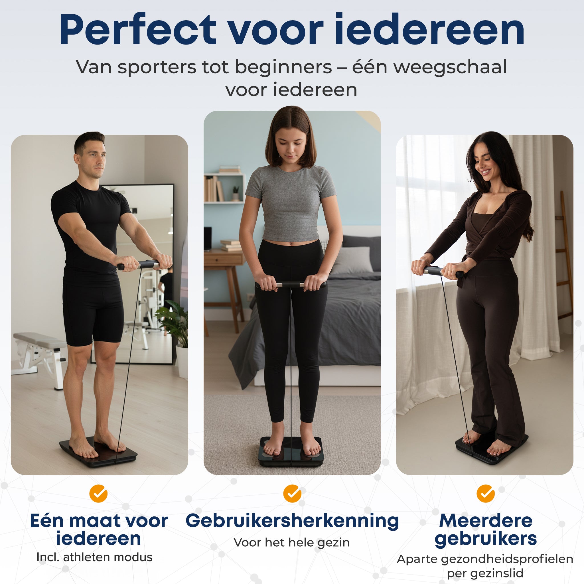 Absoluut. Je maakt één account aan en voegt eenvoudig meerdere profielen toe. Elke gebruiker heeft een eigen metingen-overzicht, zodat gewichten en analyses niet door elkaar lopen. De weegschaal herkent gebruikers automatisch aan gewicht en lichaamscompositie – handig voor gezinnen of sportmaatjes die dezelfde S15 gebruiken.